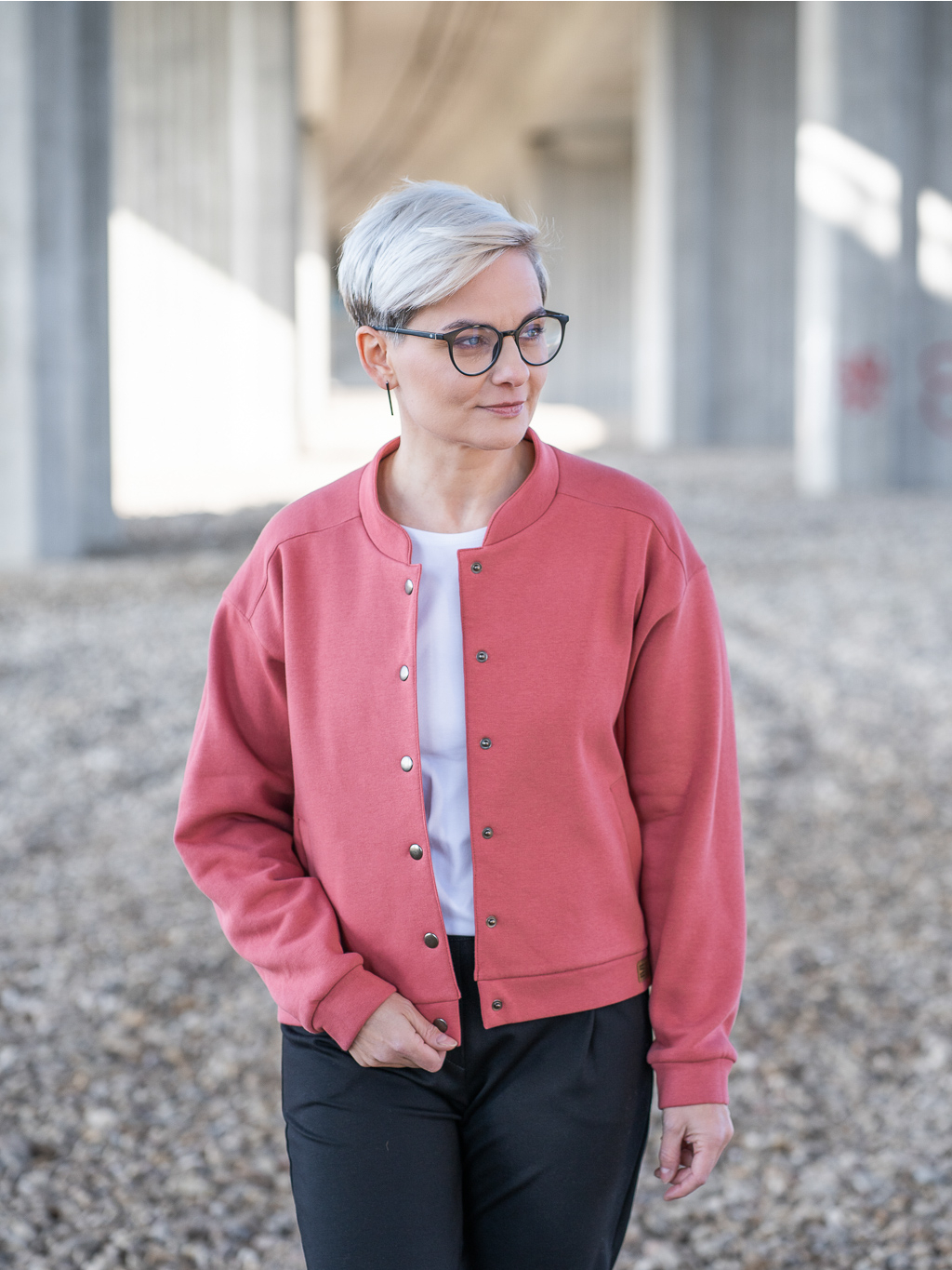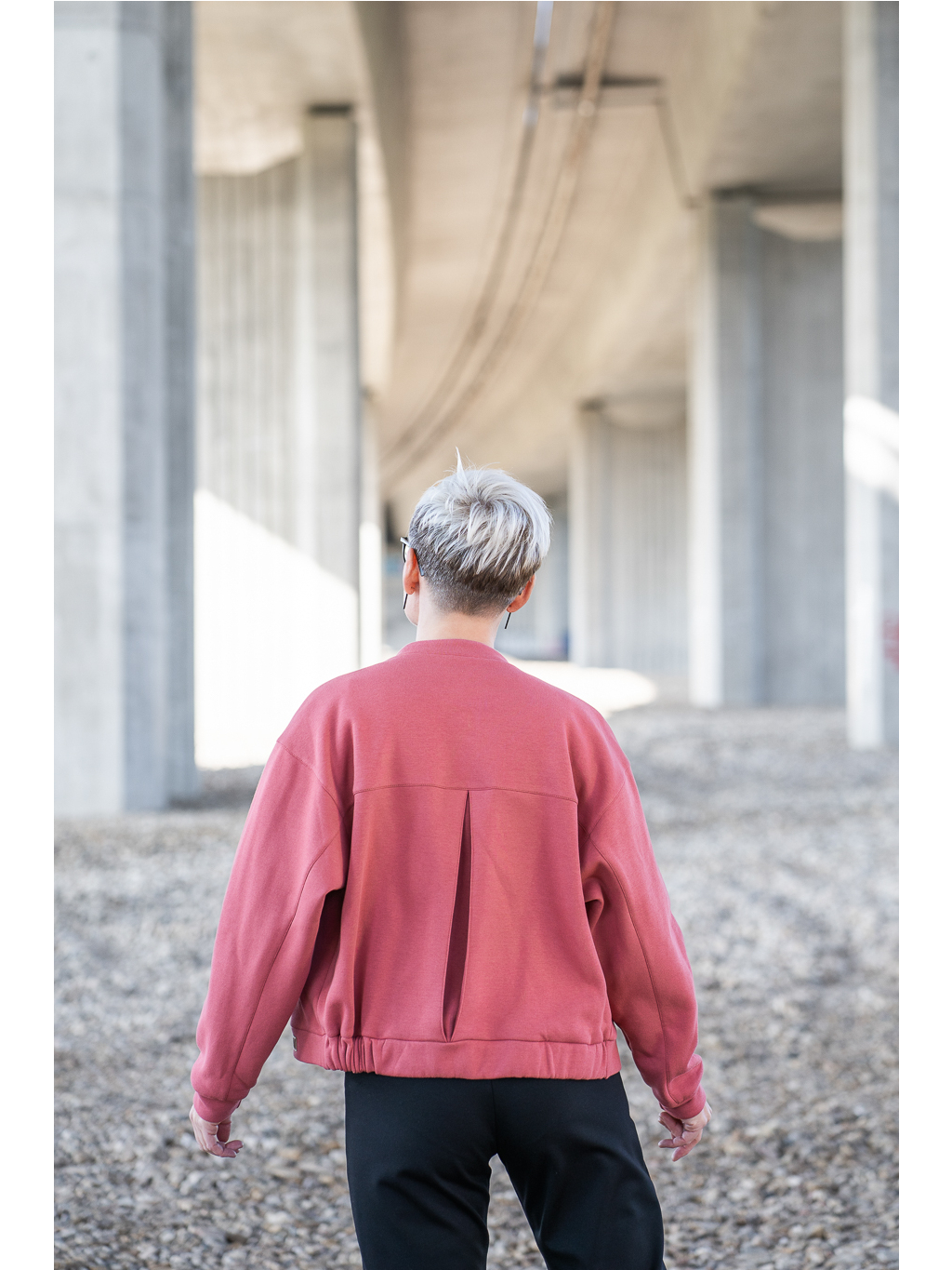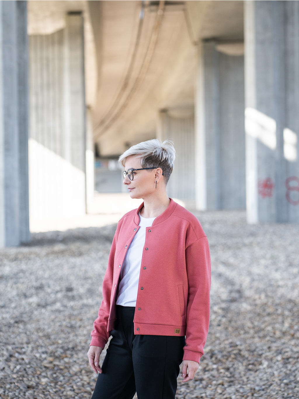 Bomber KURT je náš první kousek se zapínáním na patenty. Střih vychází z kabátku ROBBIE, má však jinak řešené praktické kapsy v boku. Na zadním díle jsme zachovali zajímavý sklad, který mu dodává moderní vibe. KURT je tak trochu oversize, ale dole je nabraný do gumy, takže perfektně sedí a neomezuje tě v pohybu. Užiješ ho skoro všude – je prostě casual, minimalistický a maximálně pohodlný.