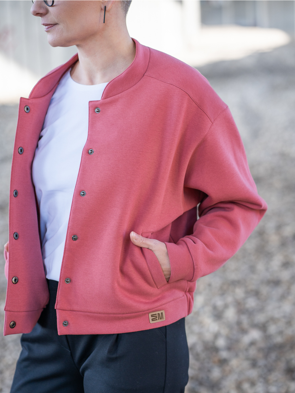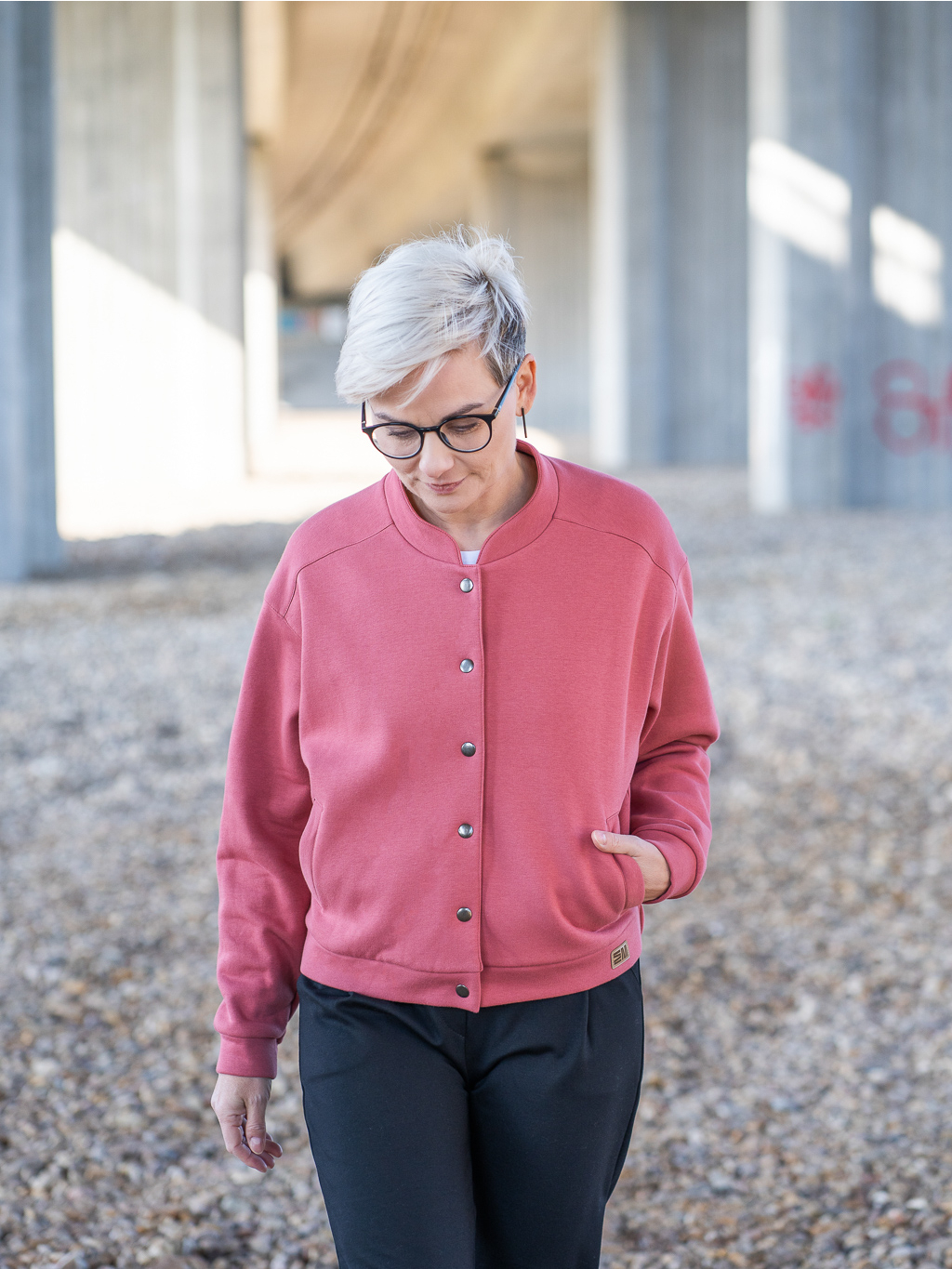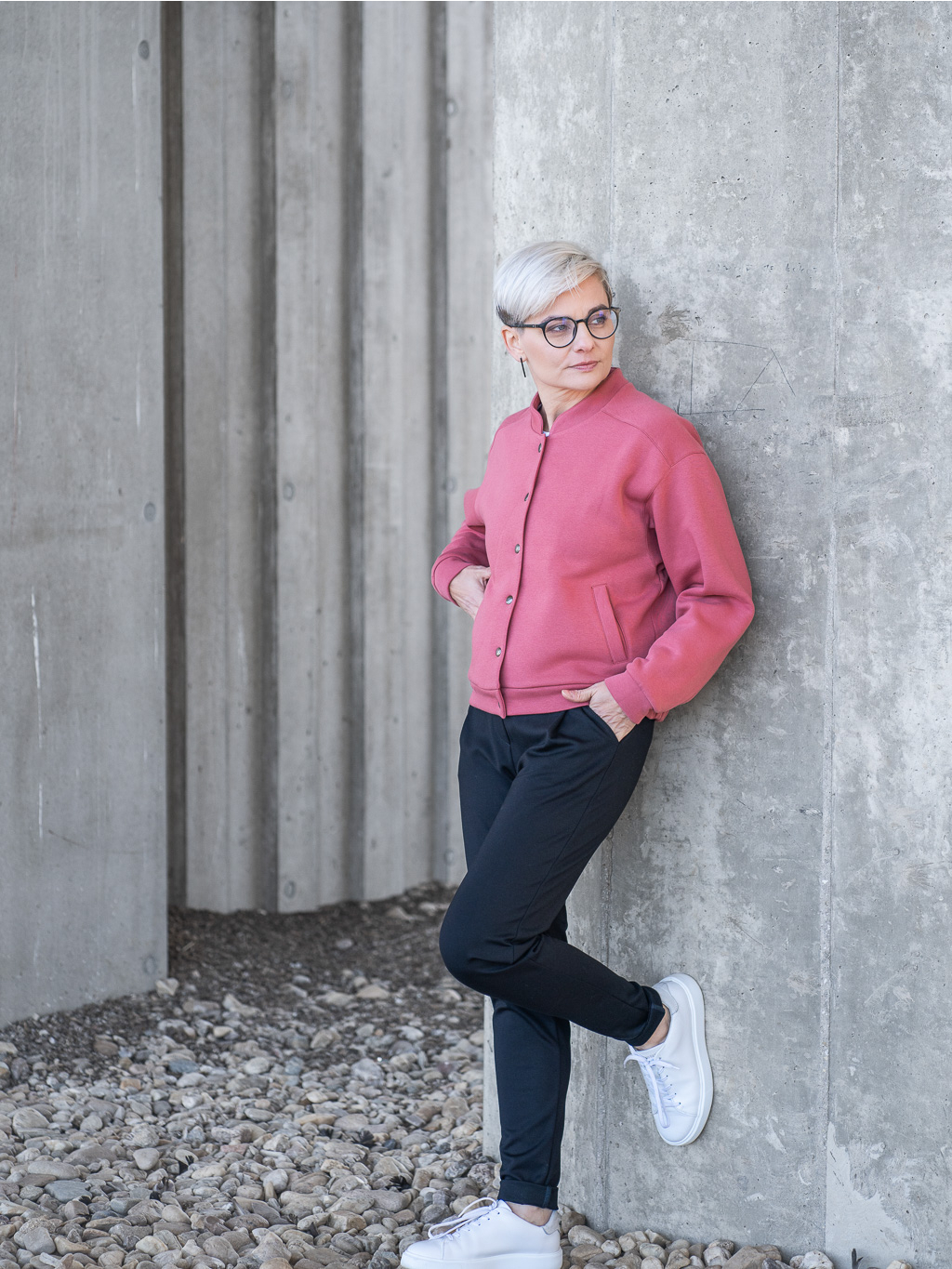 Bomber KURT je náš první kousek se zapínáním na patenty. Střih vychází z kabátku ROBBIE, má však jinak řešené praktické kapsy v boku. Na zadním díle jsme zachovali zajímavý sklad, který mu dodává moderní vibe. KURT je tak trochu oversize, ale dole je nabraný do gumy, takže perfektně sedí a neomezuje tě v pohybu. Užiješ ho skoro všude – je prostě casual, minimalistický a maximálně pohodlný.