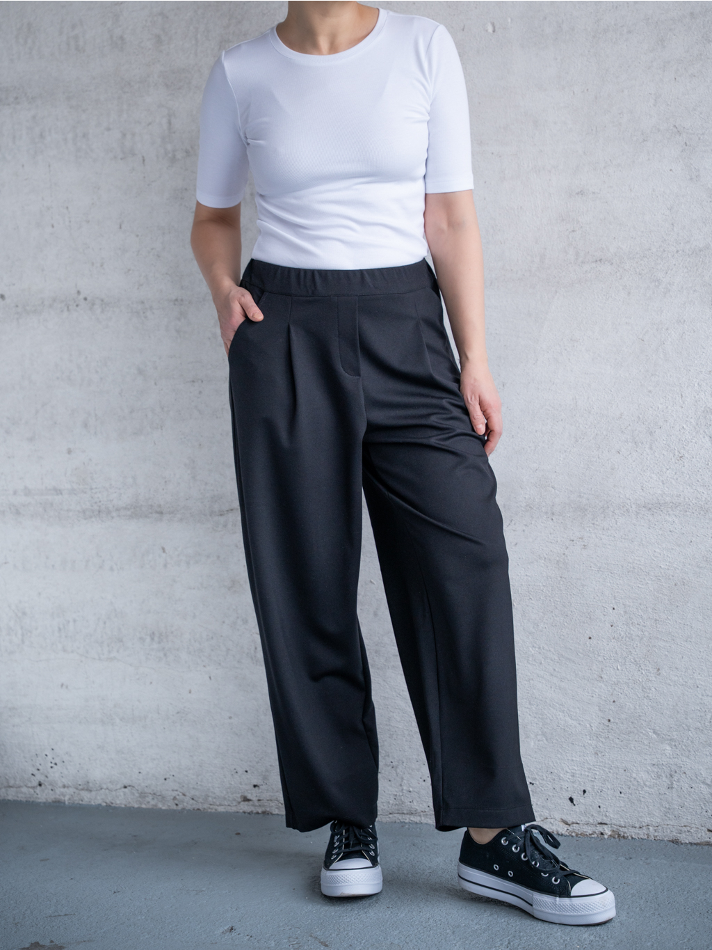 Zapadají do konceptu udržitelné a nadčasové módy. Jsou to kalhoty, se kterými vytvoříš nekonečné množství kombinací – se sakem, košilí, basic trikem i mikinou. Jedny kalhoty, spousta příležitostí.