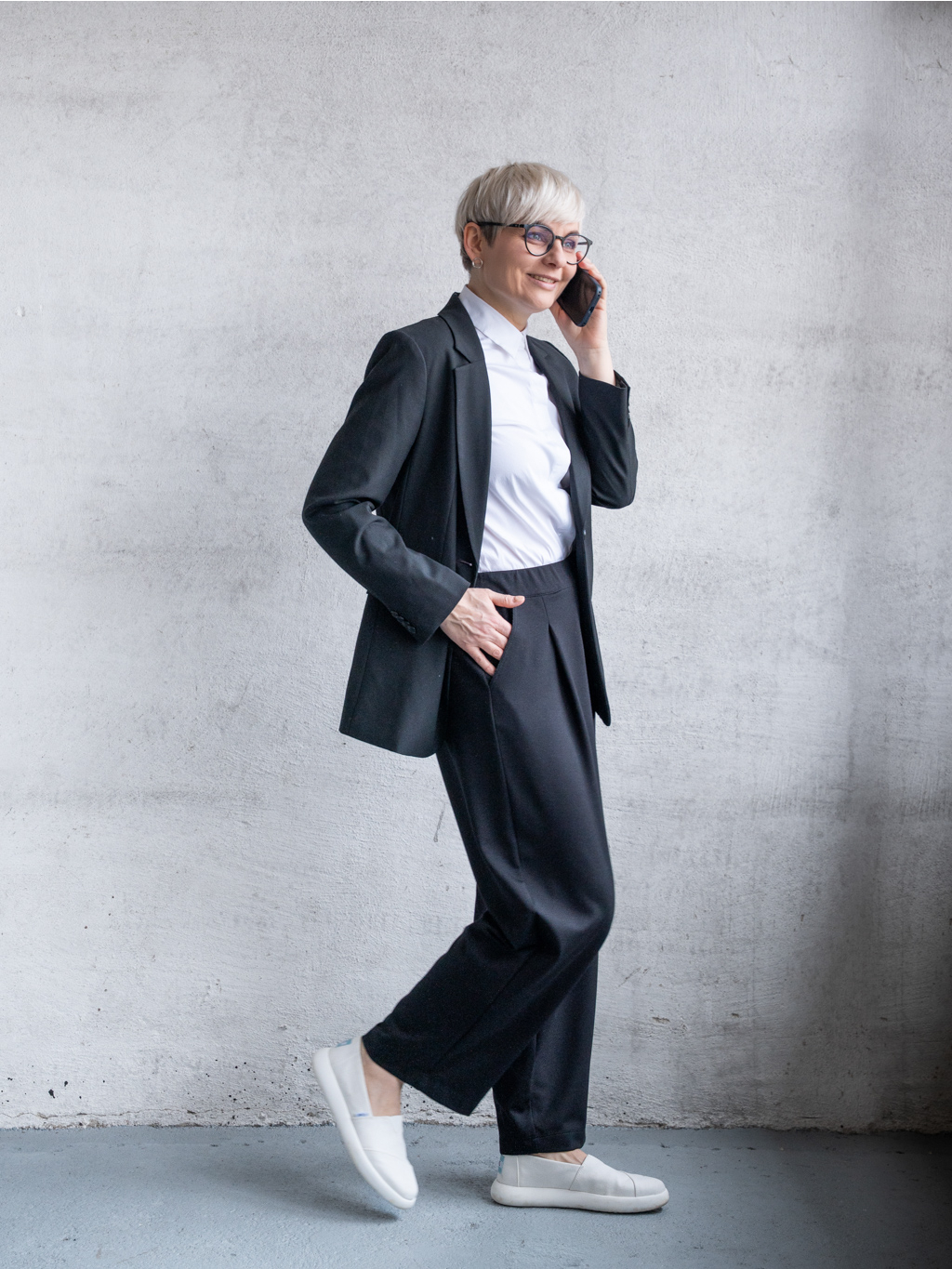 Výsledek? Čistý, sebevědomý look, ve kterém zvládneš meetingy i celý den v kanceláři – a přitom se cítíš pohodlně jako doma.