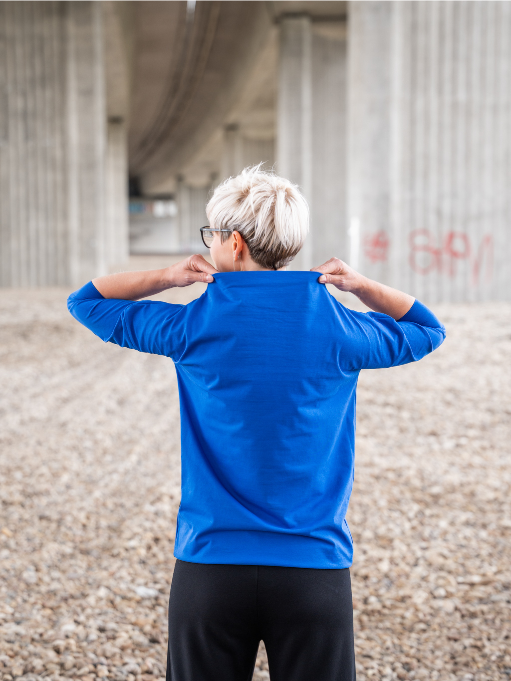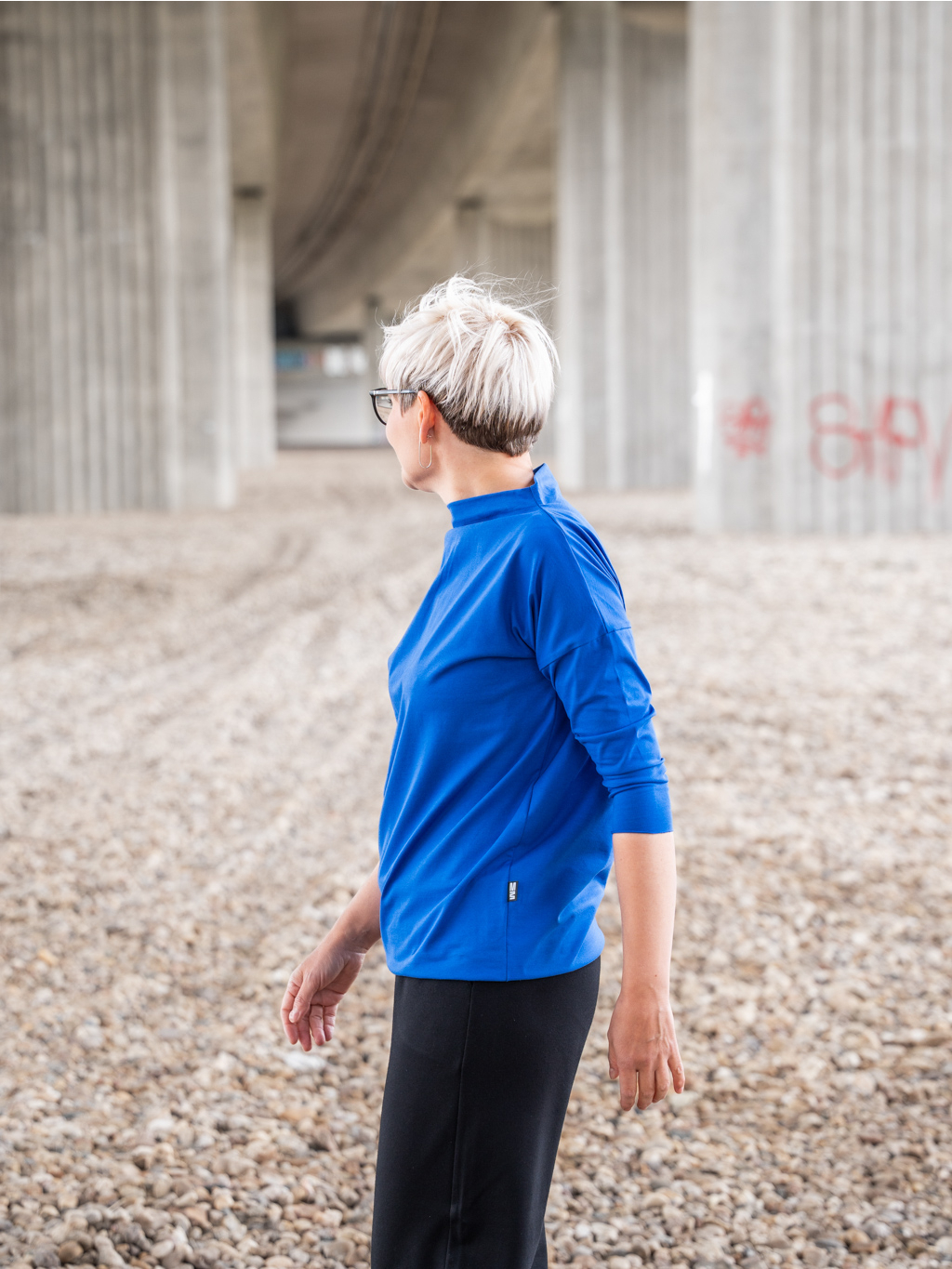 Dámská úpletová tunika CURE s ¾ rukávem a stojáčkem v barvě královská modř.