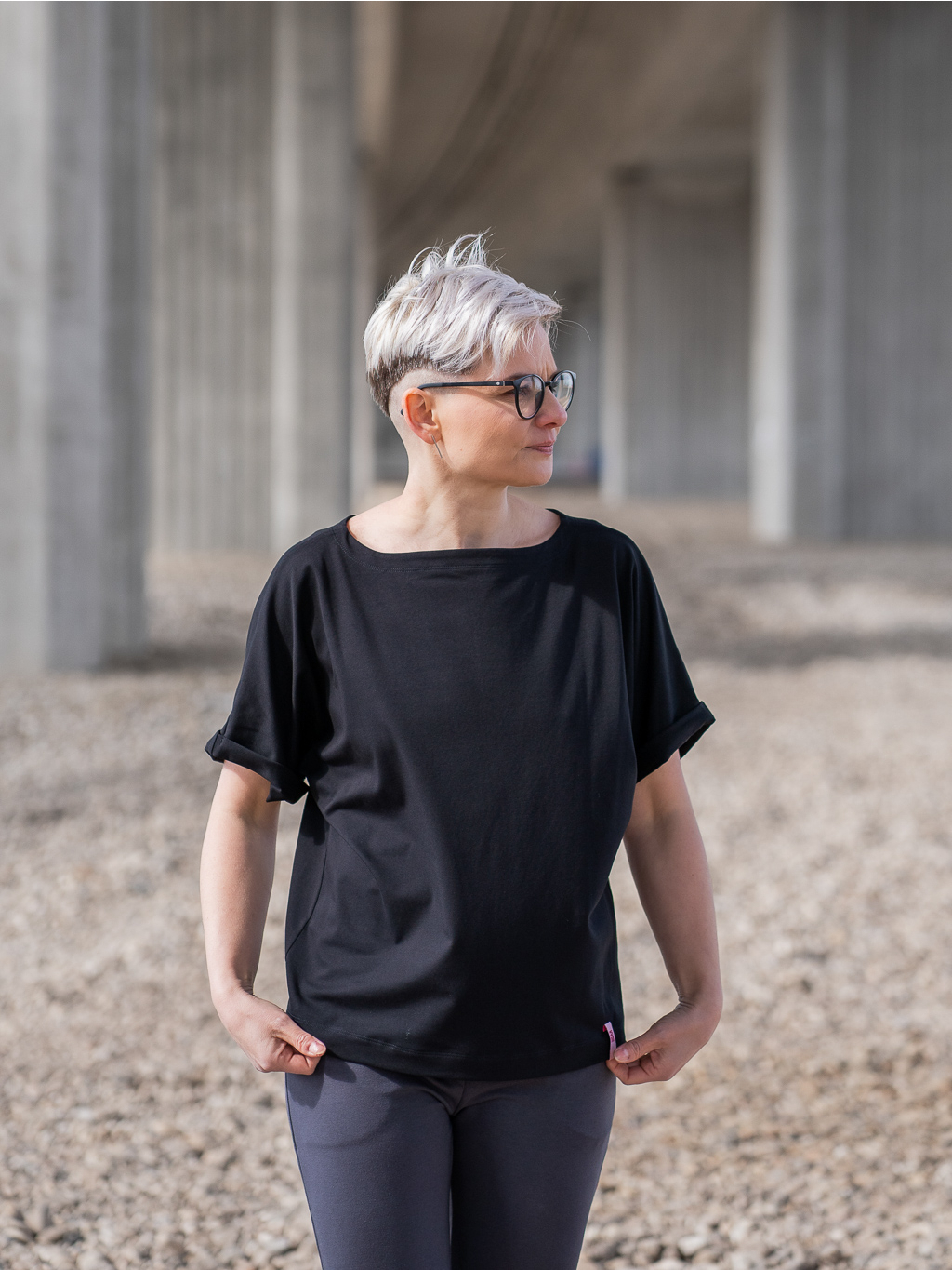 AVRIL je miláček každé ženy, která ocení pohodlí, ale ráda se obléká vkusně a trendy. Tohle triko vzniklo upgradem oblíbené tuniky FAITH, které jsme oprášili a zdokonalili střih. Délka se v tomto případě zkrátila, průkrčník a dolní lem jsou začištěné (zašité), rukávy na konci jsme volili ohrnuté, což je "in" a lodičkový výstřih to vše jen podtrhuje.