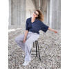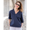 Oversized triko LOU s výstřihem do V s krátkými ale obřími rukávy v myší šedé barvě.